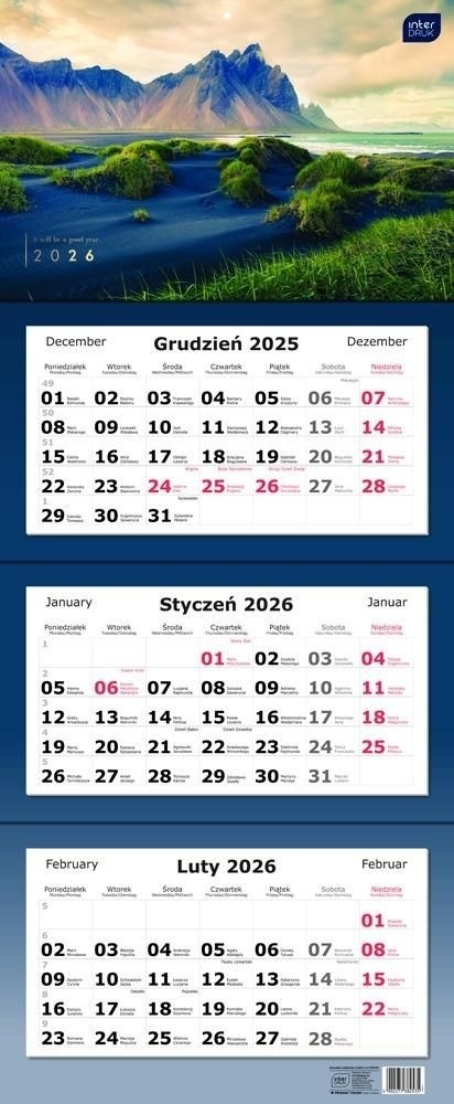 Kalendarz trójdzielny 82,5x34cm Widoki 2026